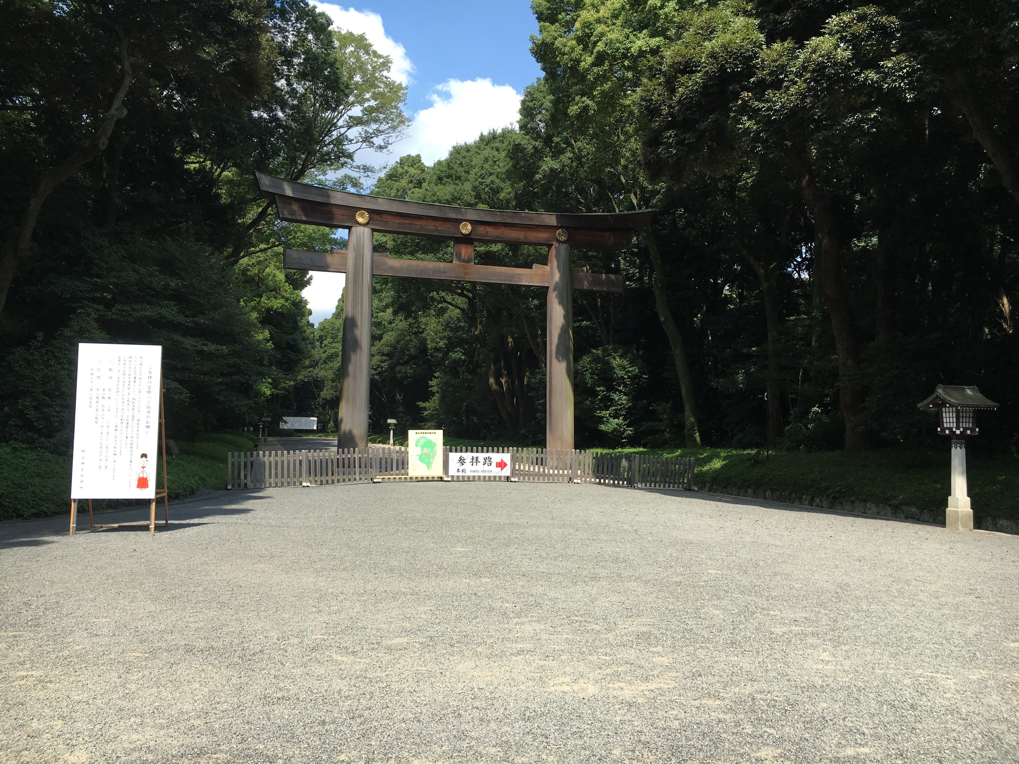 Meiji Jingu is a Shinto Shrine in the middle of the city, a green oasis with extensive forest and gardens plus the impressive Torii-gate entrance.